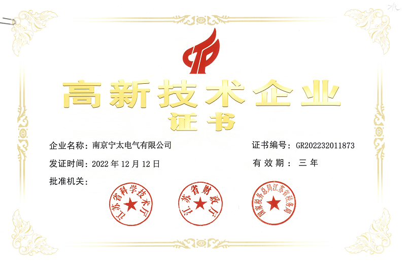近日,公司通过“2022年度国家高新技术企业”认定。 国家高新技术企业认定是对企业拥有的核心知识产权、研发投入、研发团队建设、科技成果转化能力、组织管理能力及成长能力等综合指标认定。 宁太电气被授予“国家高新技术企业”,无疑是对宁太电气技术创新潜能的再度肯定。